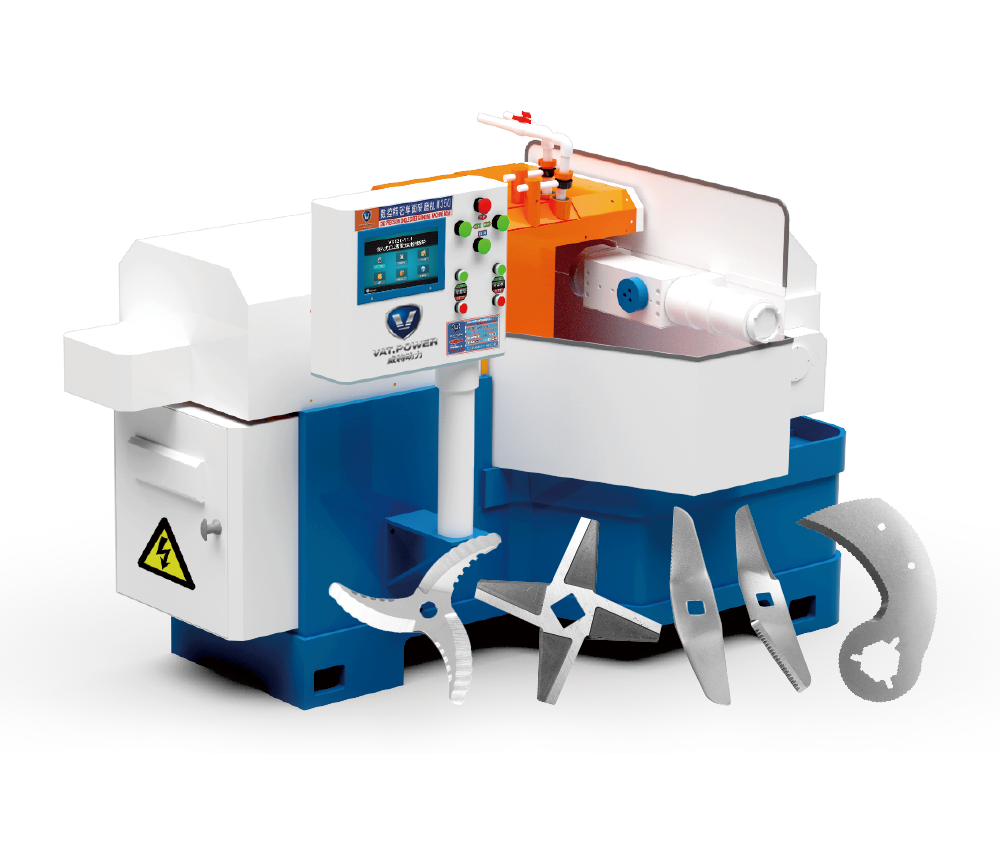 該設(shè)備研磨剪刀、兵工鏟、攪拌機(jī)刀、樹(shù)枝剪、花刀、登山刀、求生刀、單刀、菜刀和各類(lèi)刀剪產(chǎn)品刃口、刀口、工作面的磨削加工, 磨削面可以仿形為扭曲、圓弧、波浪形、平面、斜面等。