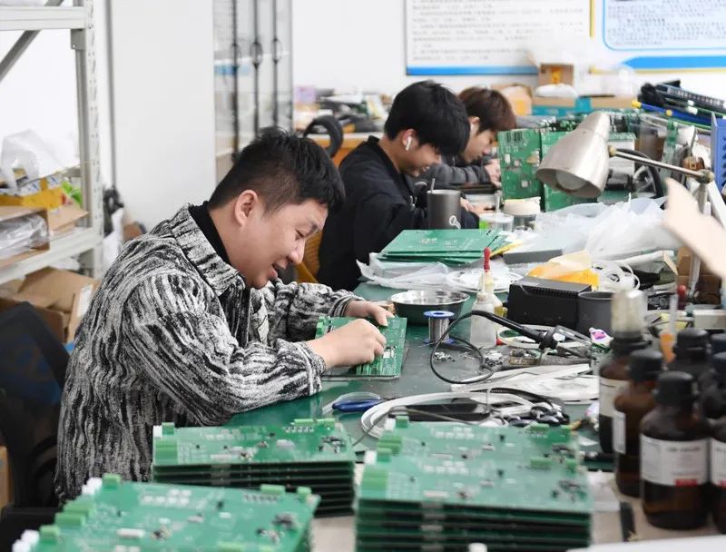 走進(jìn)陽(yáng)江市威特動(dòng)力有限公司的研發(fā)中心,讓人不禁放慢腳步——只見(jiàn)技術(shù)人員手持鑷子穩(wěn)穩(wěn)夾持電子元器件,精準(zhǔn)貼放在電路板上,然后用電烙鐵在元器件兩側(cè)點(diǎn)焊,行云流水般完成操作。